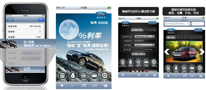 3、项目背景:福特新车上市,百威WIFI无线引导用户通过智能手机在线计算购车金融方案 。